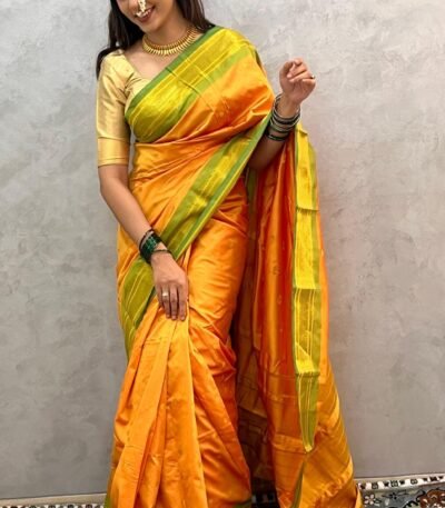 Kadiyal Paithani | Vibrant orange / saffron-orange |