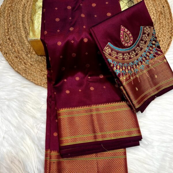 Kalanjali Paithani | All over Buttis | Aari work Blouse | Royal Maroon |