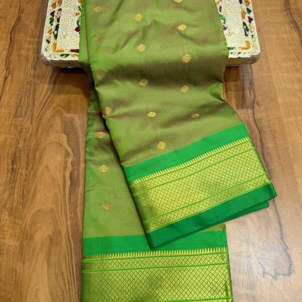 Kadiyal Paithani Premium Katan Silk with Meena Buttis & Peacock Pallu