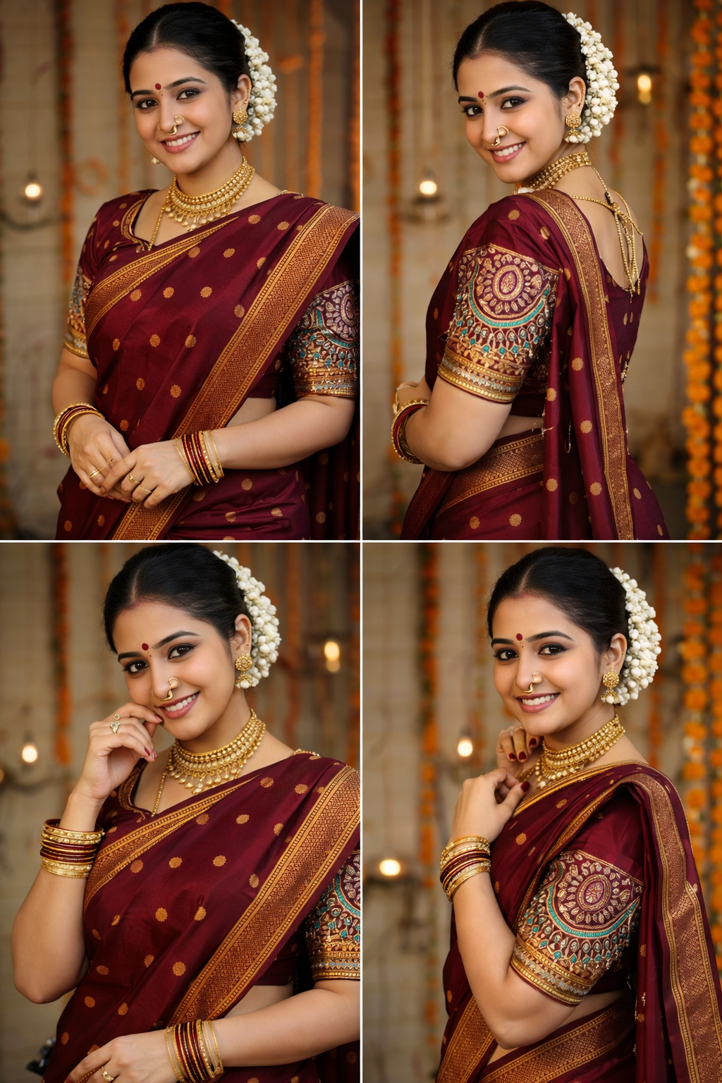 Kalanjali Paithani | All over Buttis | Aari work Blouse | Royal Maroon |