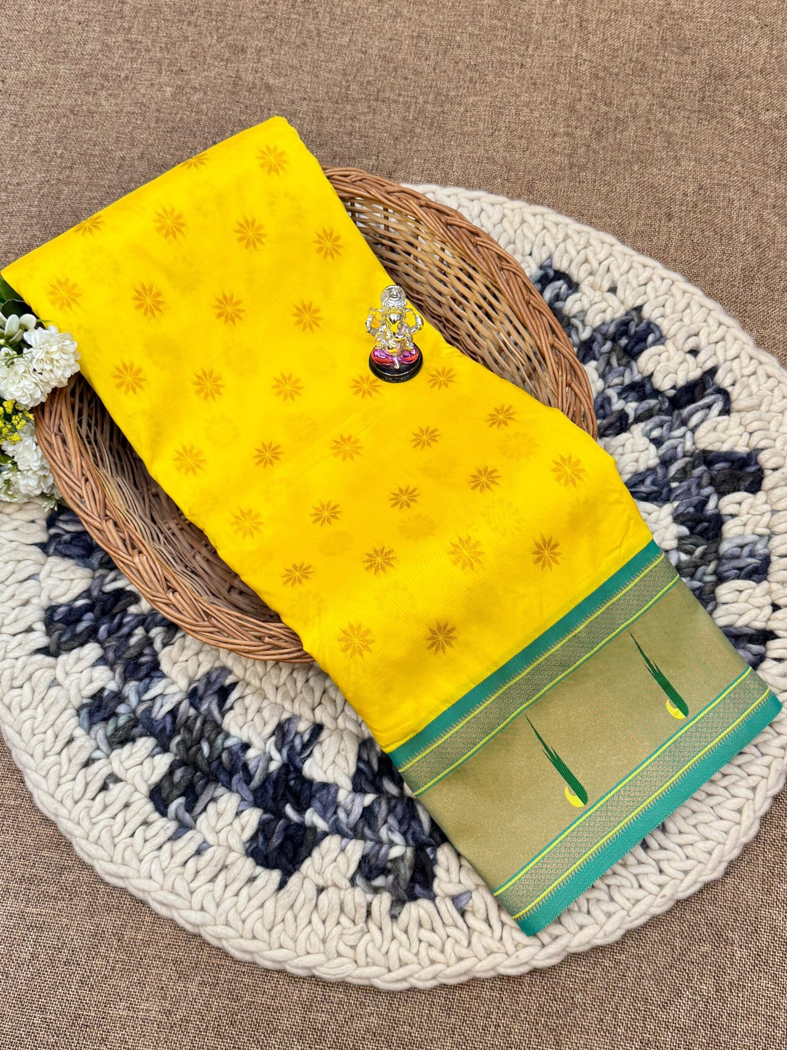 Kadiyal Paithani – Emerald Green with Pink Contrast | Premium Silk Feel