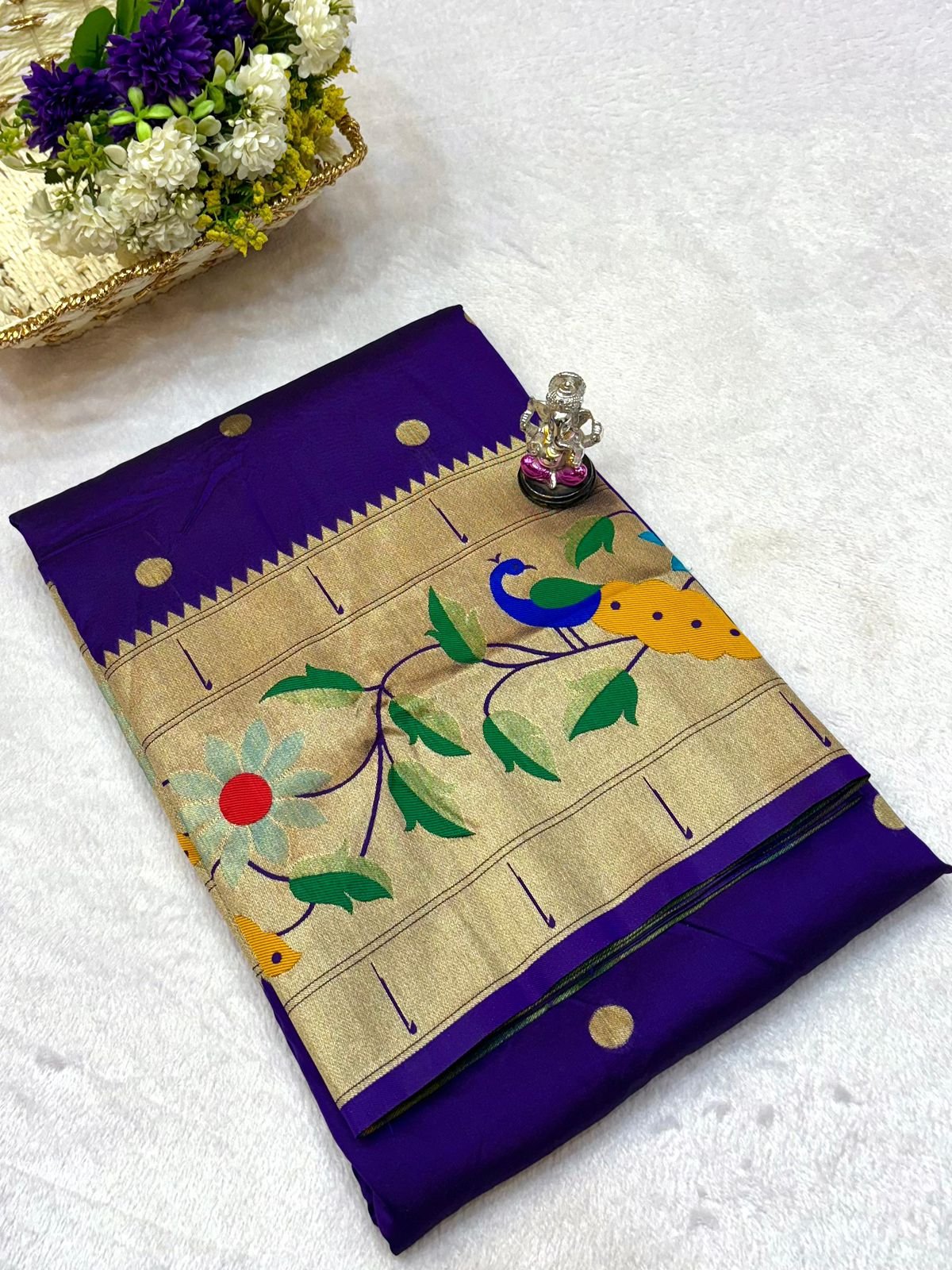 - Craft: Authentic Paithani-inspired brocade weaving with rich zari artistry