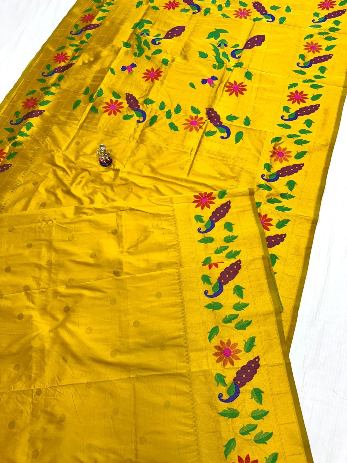 Radha Rani Brocade Paithani | Sunny yellow /Turmeric yellow